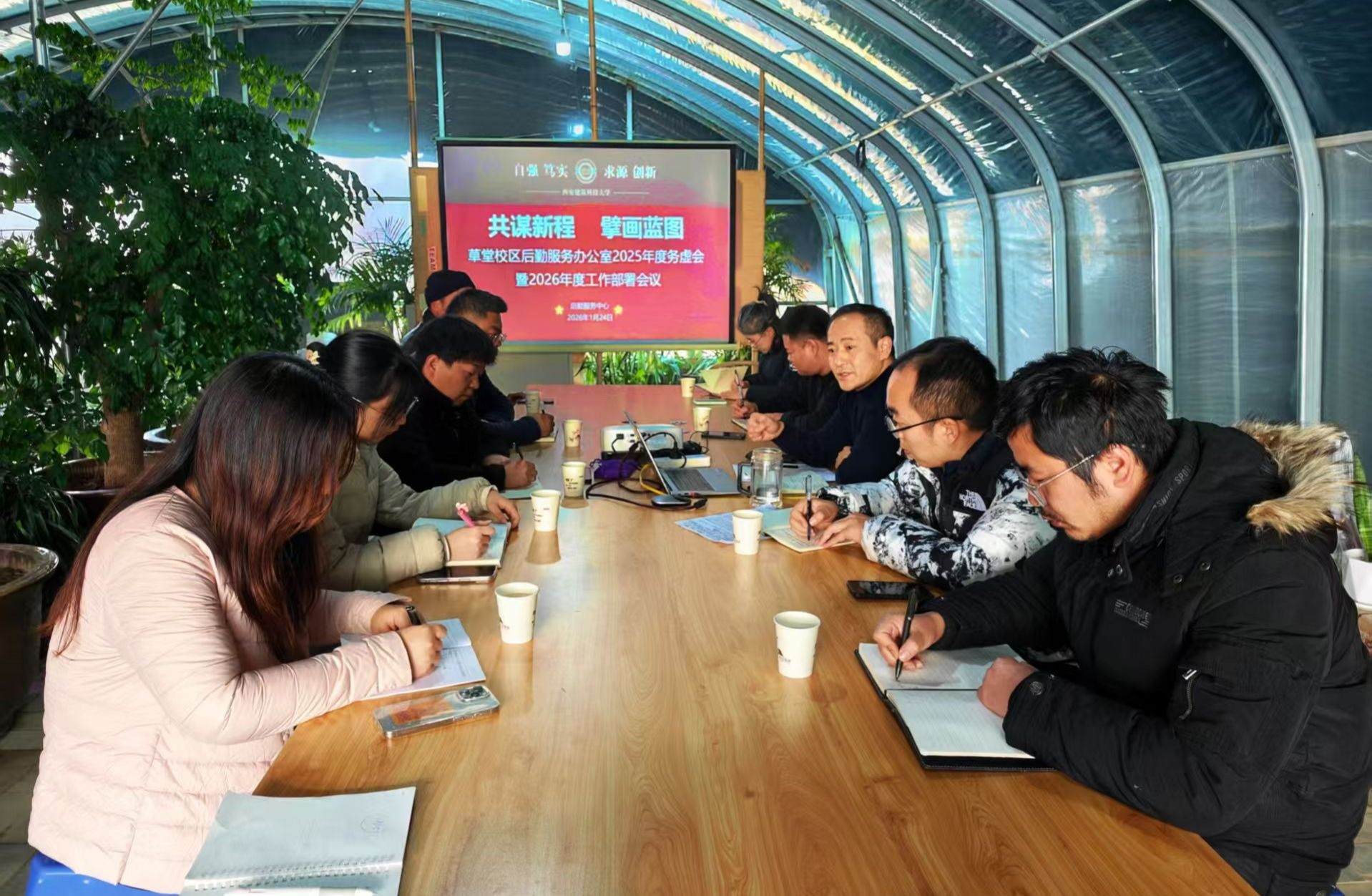 1月24日下午,草堂校区后勤服务办公室召开务虚会暨2026年度工作部署会议。会议以“共谋新程,擘画蓝…